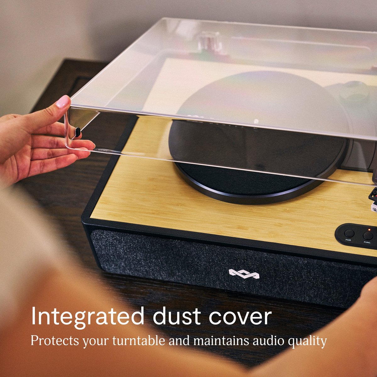 - Geïntegreerde stofkap – beschermt de speler en behoudt geluidskwaliteit