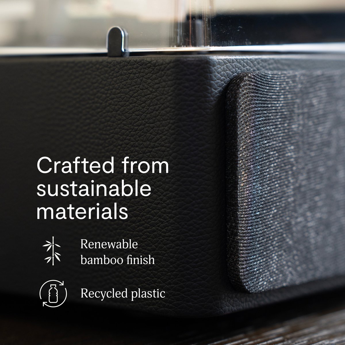 - Duurzaam design – bamboe afwerking & gerecyclede vilten slipmat